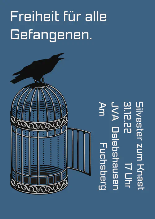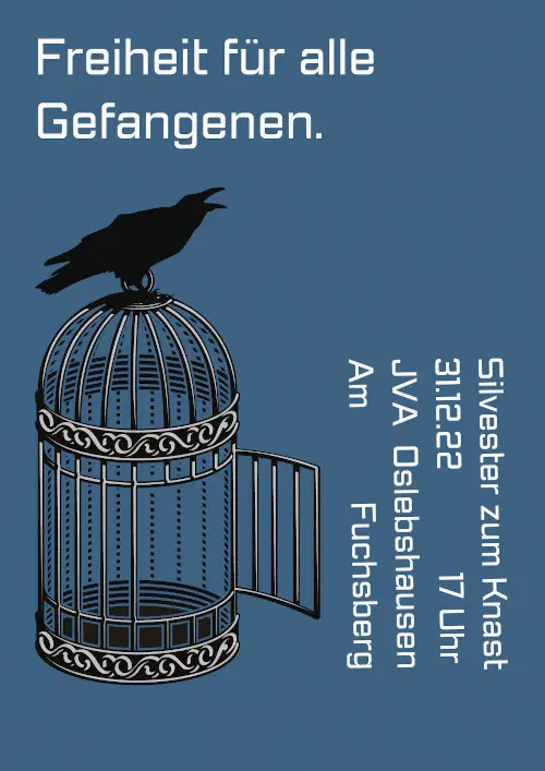 An Silvester wollen wir den Gefangenen in den Knästen zeigen, dass sie nicht alleine sind. Wir lehnen jegliche Form von staatlicher Repression ab. Eine Gesellschaft ohne Knäste ist, was wir wollen. Für ein gutes Leben für alle! Freiheit für alle Gefangenen!