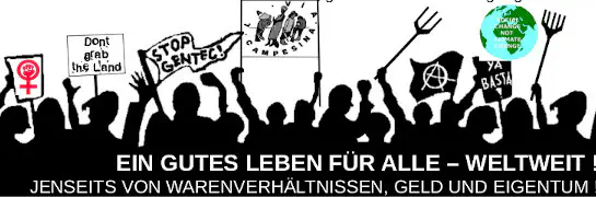 Alles, also auch die industrielle Agrar-Industrie, braucht heute einen Anstrich als ‚nachhaltig‘ oder ‚Green (New) Deal‘. Egal wie grün die Agrar-Industrie angestrichen wird (pflugloser Anbau von gv-Soja, Tierwohl-Etiketten, …) – sie ist verantwortlich für existenzbedrohende Zerstörungen. Ein immer größerer Teil der landwirtschaftlichen Produktion produziert nicht mehr Lebensmittel sondern z.B. Agro-Treibstoffe, Viehfutter, Industrie-Öle oder Agro-Kunststoffe. Dafür wird immer mehr Land umgewidmet. Einerseits wird damit Wildnis zerstört, andererseits werden kleinbäuerliche Flächen enteignet, Bäuer*innen vertrieben. Das Land wird in beiden Fällen in industrielle Agrar-Wüste verwandelt und heizt die Erderhitzung und das Massen-Artenaussterben an. Auch Hunger ist keine Frage, ob Agrarchemie oder Gentechnik ggf. die Erträge steigern (was gar nicht so eindeutig ist) sondern eine Frage der Verteilung. Weltweit zeigt sich das für sehr viele als Ausschluss durch fehlendes Geld. (zur Kritik der industriellen Agrar-Industrie und zu gelebten Alternativen machen wir mit anderen ab 19.2. eine Veranstaltungs-Reihe).