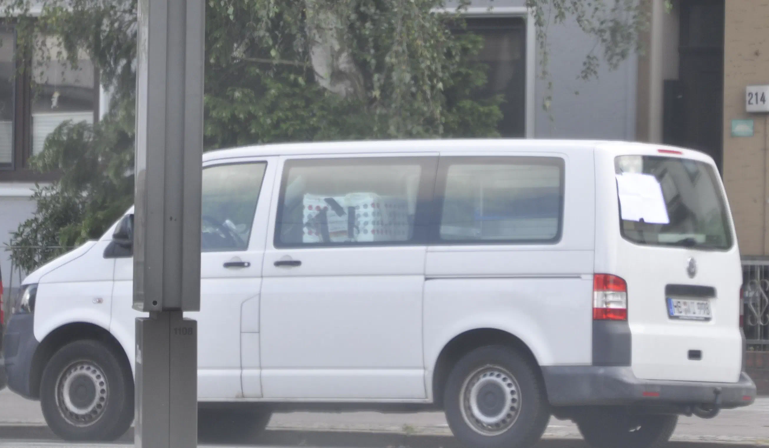 Der Bus war als ‚Handwerker-Auto‘ getarnt, inkl. gut sichtbarem Arbeitsmaterial, Werkzeug und dem Klischee entsprechenden leeren Kaffeebechern auf dem Beifahrersitz. Im hinteren Bereich des VW Multivan stand ein Schwerlastregal. Neben anderen Kartons befand sich dort eine Plastikkiste, in welche eine getönte Scheibe eingesetzt war. Die Seite mit der getönten Scheibe zeigte auf den Treffpunkt des Sommerfestes auf der gegenüberliegenden Straßenseite. Obwohl das Kameraversteck auf den Bildern recht stümperhaft wirkt, war es im Innenraum des Fahrzeuges relativ gut getarnt. Durch das Abkleben der hinteren Fenster wurde die Videoüberwachung unterbunden. Später im Dunkeln war es möglich, mit einer Taschenlampe durch die getönte Scheibe zu leuchten und die Kameralinse zu sehen. Es ist davon auszugehen, dass die entsprechende Behörde das Fahrzeug auswechselt.