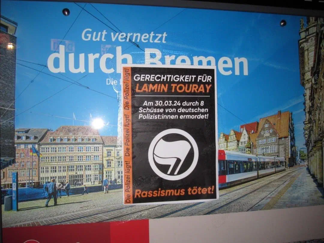Die Polizei gibt sich zu gerne als Beschützer der Bürger:innen aus. Sie propagiert sich als Freund Helfer aller. Eine Darstellung, die nicht weiter von der Realität entfernt sein könnte. Oft reicht es von Armut betroffen, psychisch Krank oder einfach nur nicht weiß zu sein um ins Visier der Polizei zu geraten. Ein kleiner Diebstahl im Supermarkt oder eine Fahrt ohne Ticket kann zu gewaltsamen Festnahmen und Knast führen. Es reicht aus nicht weiß zu sein, um in tägliche willkürliche Kontrollen zu geraten. Bei Menschen mit psychischen Ausnahmesituationen enden Polizeieinsätze, wie im Fall von Lamin Touray nicht selten tödlich! Die Polizei gefährdet Menschen viel mehr als sie diese schützt! Für tausende Menschen in Bremen und Millionen in Deutschland ist sie weder Freund noch Helfer! Für so viele bedeutet ein Streifenwagen keine Sicherheit sondern Angst. Für eine Gesellschaft in der Menschen in psychischen Ausnahmesituationen Hilfe erhalten! Für eine Welt in der niemand wegen seiner Hautfarbe zur Zielscheibe wird! Für ein System in der niemand gezwungen ist zu klauen um essen auf dem Tisch zu haben! Lasst uns für etwas besseres kämpfen. Für eine Zukunft in der Menschen solidarisch zusammenstehen: eine Zukunft die keine Polizei braucht! Deshalb fordern wir die Aufklärung aller Todesfälle durch Sicherheitsbehörden und eine Entwaffnung der Polizei!