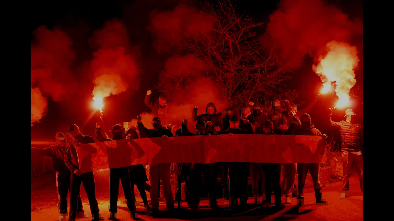 Das wollten wir so nicht hinnehmen und deshalb trafen wir uns, um mit etwas Pyrotechnik einen kleinen Gruß für die kürzlich verhafteten Antifas zu Knipsen.