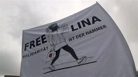 Es ist ein nass-kalter Februarmorgen. Von Ferne sind schon zahlreiche Polizeikräfte zu erkennen. Um überhaupt zum Eingang des Bundesgerichtshofs (BGH) zu gelangen, müssen Menschen sich ausweisen, stehen sie nicht auf irgendeiner der Listen die die Beamt:innen mit sich herum tragen, ist kein Weiterkommen. Wer an der öffentlichen Hauptverhandlung des 3. Strafsenats im Fall Lina E. teilnehmen wollte, musste sich schon im Januar, unter Angabe der Personalien, anmelden. Es ist 8:30 Uhr und erste Demonstrant:innen stehen vor den massiven Polizeiabsperrungen, stellen Lautsprecher auf und es ist die erste Rede der Roten Hilfe zu hören, die das Verfahren und auch den martialischen Polizeieinsatz vor dem Gerichtsgebäude einordnet.
