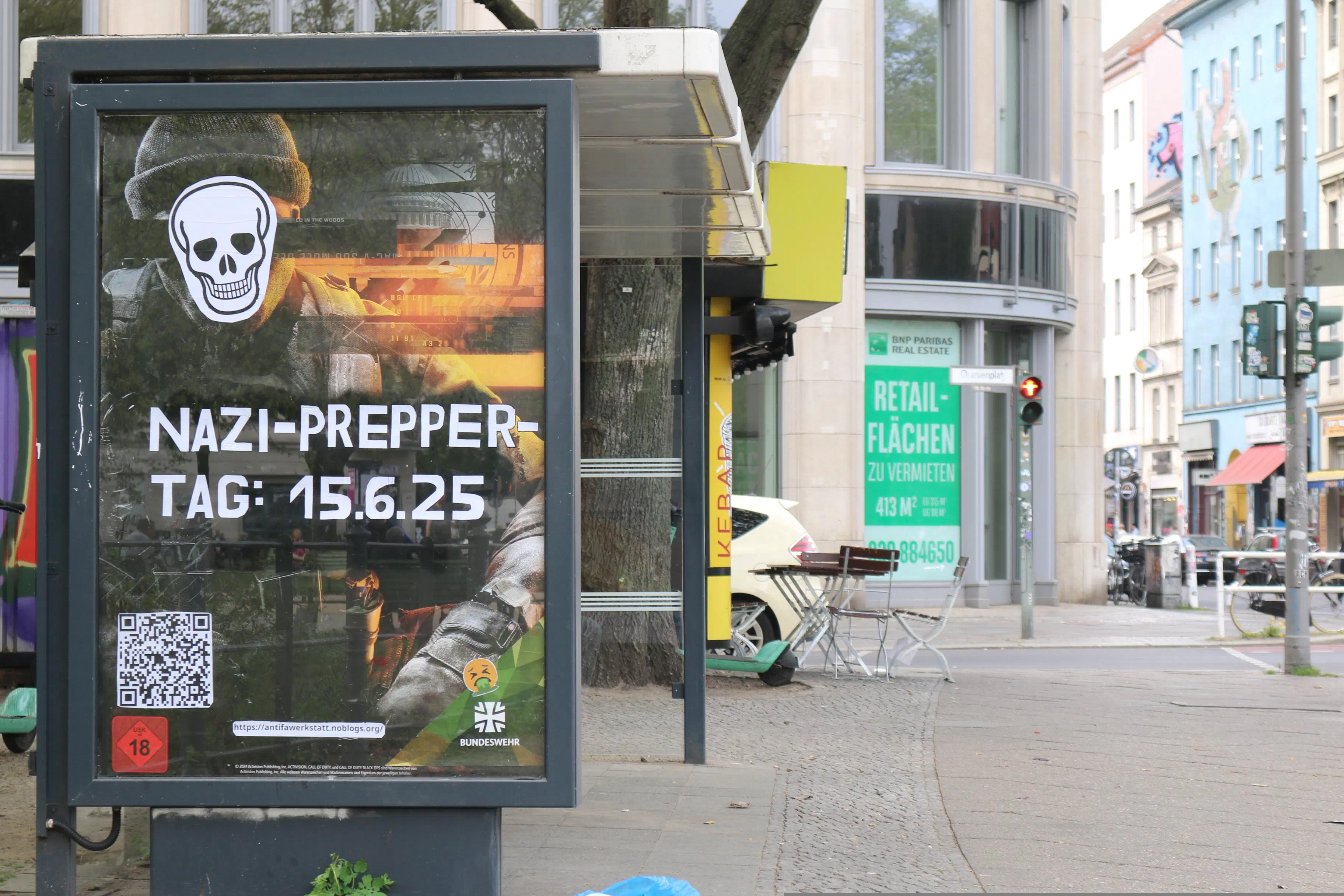 Der „Veteranen:innentag“ ist ein guter Anlass, um mit vielfältigen Aktionen zu zeigen, dass um aus dem selbstgewählten Propaganda-Tag der Militärs einen „Nazi-Prepper-Tag“ zu machen. So wird die Bundeswehr am 15. Juni 2025 nicht mit Flugshows und Panzer-Hüpfburgen davon ablenken können, dass sie ein mörderischer und sexistischer Verein ist, in dem sich Nazis munter tummeln. Stattdessen werden wir sie in aller Öffentlichkeit bloßstellen und im besten Fall gar lächerlich machen. Daher rufen wir zum 15. Juni 2025 deutschlandweit zu allerlei kreativen Aktionen auf, um den „Naziprepper-Tag“ zum medialen Desaster für die Bundeswehr zu machen:
