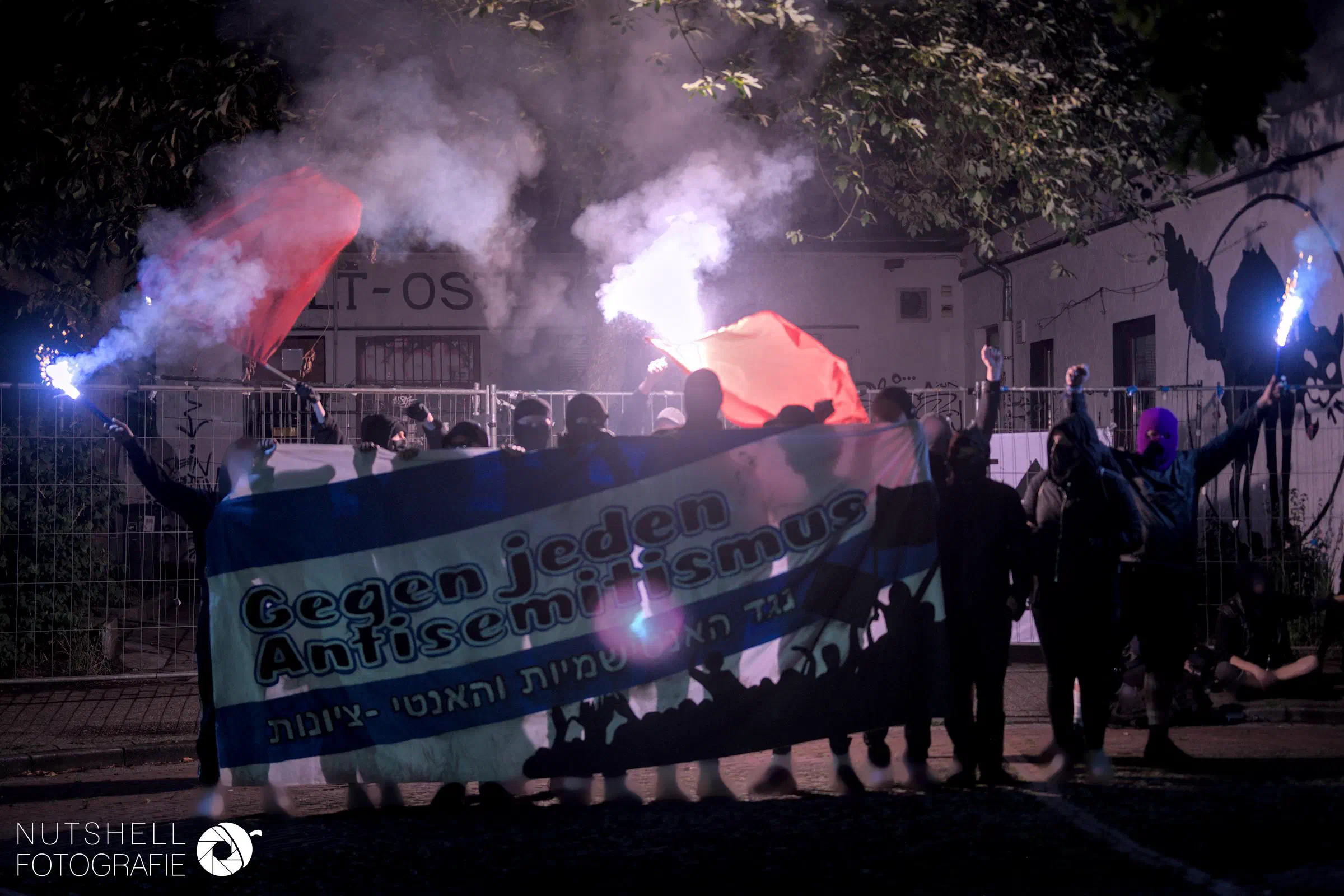 Als Antifaschist*innen, die in verschiedenen Gruppen und Zusammenhängen das Alhambra nutzen, wenden wir uns entschieden gegen dieses antisemitische und autoritäre Drohgebaren. Deshalb haben wir am Freitag Abend vom Dach des Alhambras ein unmissverständliches Zeichen gegen Antisemitismus gesetzt und deutlich gemacht,dass wir solche Angriffe auf einen linken Raum nicht hinnehmen. Wir bedanken uns bei allen weiteren Genoss*innen, die mit uns am Freitag das Alhambra geschützt haben.